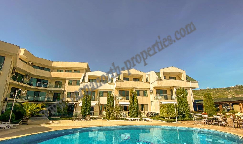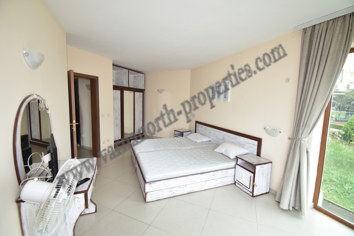 Апартаментът се намира на партерния етаж и има директен достъп до градината и басейна. Апартаментът е с площ от 80 м2 и се състои от хол с кухня, спалня, баня и тераса.