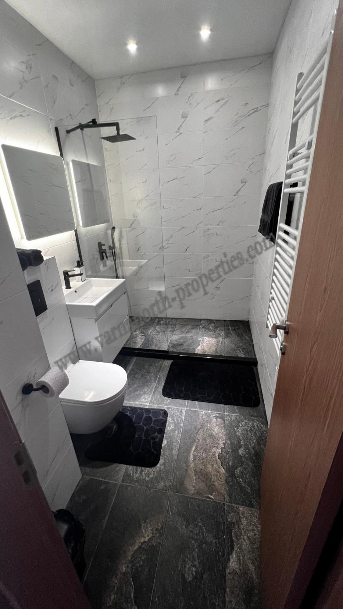 Wir bieten eine luxuriöse Zwei-Zimmer-Wohnung mit Blick auf das Meer und die weißen Felsen in Balchik zum Verkauf an. Die 83,23 m² große Wohnung befindet sich im fünften Stock einer geschlossenen Anlage mit Außenpool, Bar, Parkplätzen und geringen Nebenkosten. Das Gebäude verfügt über einen Aufzug und luxuriöse Gemeinschaftsräume, die ein Gefühl von Komfort und Prestige vermitteln. Die Wohnung ist mit komplett neuen, stilvollen Möbeln ausgestattet. Die Raumaufteilung ist funktional und komfortabel: zwei Schlafzimmer mit Zugang zu einer gemeinsamen Terrasse, ein Esszimmer mit Kochnische und einer separaten Terrasse mit herrlichem Meerblick, ein Badezimmer mit WC und ein Flur. Die Anlage liegt in einer ruhigen und grünen Gegend, in unmittelbarer Nähe des Botanischen Gartens und 1200 Meter vom Palaststrand entfernt. Dies verbindet Ruhe mit einfachem Zugang zu den wichtigsten Annehmlichkeiten. Die Wohnung eignet sich sowohl zum Wohnen als auch zum Kauf als Investition. Das macht sie sowohl im Sommer als auch im Winter besonders attraktiv.